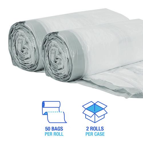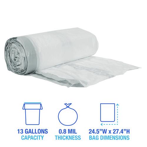 Drawstring Kitchen Bags/Liners, Drawstring, 13 gal, 24" x 28", White, 50 Bags/Roll, 2 Rolls/Carton