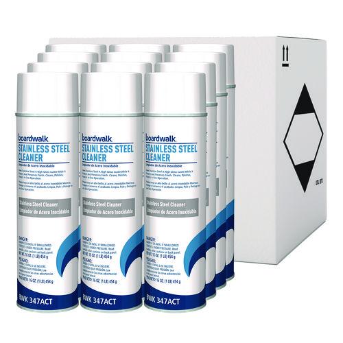 Stainless Steel Cleaner and Polish, Water-in-Oil Based, Lemon Scent, 18 oz Aerosol Spray, 12/Carton