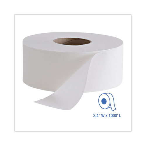 Jumbo Roll Bathroom Tissue, Septic Safe, 2-Ply, 3.4" x 1,000 ft, White, 12 Rolls/Carton