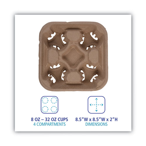 Cup Carrier Tray, 8 oz to 32 oz, Four Cups, Kraft, 300/Carton