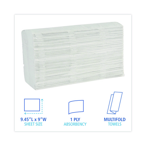 Multifold Paper Towels, 1-Ply, 9 x 9.45, White, 250 Towels/Pack, 16 Packs/Carton