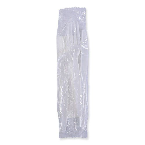 Six-Piece Cutlery Kit, Heavyweight, Fork/Knife/Napkin/Pepper/Salt/Spoon, Plastic, White, 250/Carton