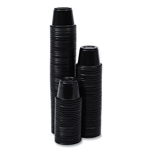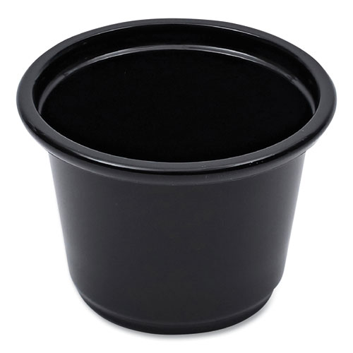 Souffle/Portion Cups, 1 oz, Plastic, Black, 125/Sleeve, 20 Sleeves/Carton
