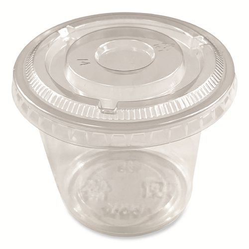 The perfect, small size, portion control cup that's ideal for dressings, sauces, sides, and toppings. These sturdy, high-quality cups are great for samples, condiments, and smaller food items. The substantial lip snugly fits with a Boardwalk® lid (sold separately) to keep liquid or solid contents inside when packing meals to-go. High-quality polypropylene design provides great strength and stability, allowing for convenient stacking and storage.