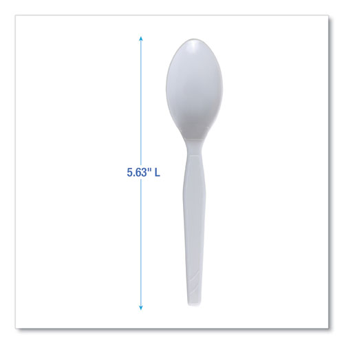 Mediumweight Polystyrene Cutlery, Spoon, Plastic, White, 100/Box