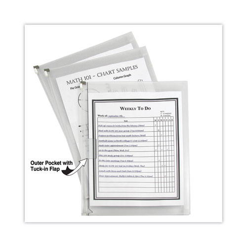 Zip 'N Go Reusable Envelope with Outer Pocket, 1" Capacity, 2 Sections, 10 x 13, Clear, 3/Pack