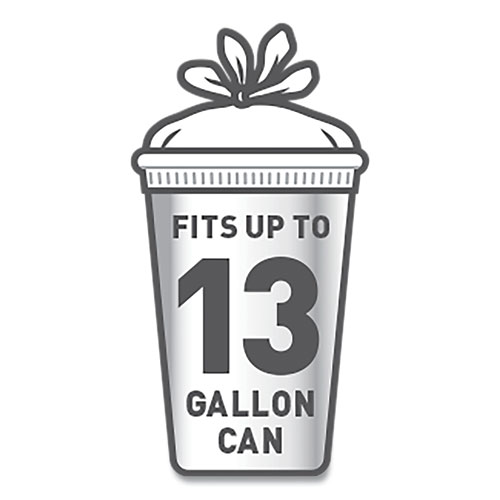 Tall Kitchen Quick-Tie Bags, Tie-Flap, 13 gal, 23.75" x 28", White, 200/Box