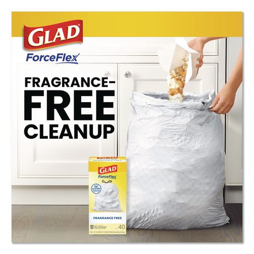 ForceFlex Kitchen Drawstring Trash Bags, Drawstring, 13 gal, Unscented, 23.47 x 25.38, White, 110 Bags/Box, 3 Boxes/Carton