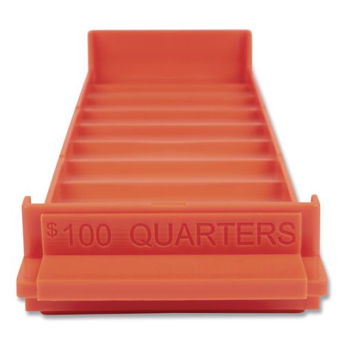 Stackable Plastic Coin Tray, Accommodates $100 in Quarters, 3.75" x 11.5" x 1.5", Orange