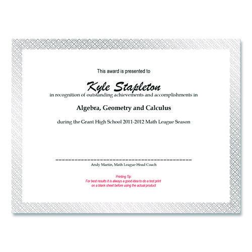 Foil Border Certificates, 8.5 x 11, White/Silver with Braided Silver Border,15/Pack