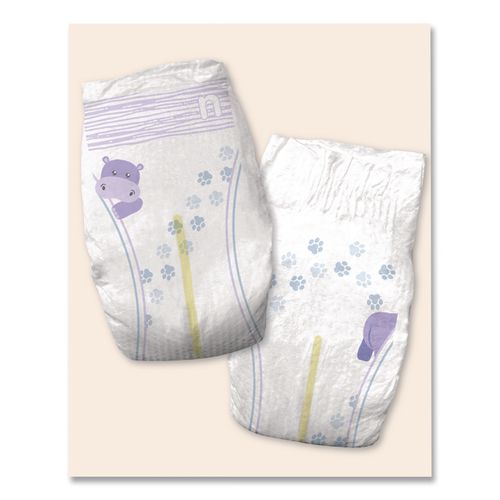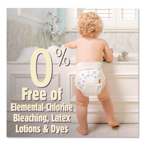 Keep moisture away from babies' skin. Hypoallergenic construction is ideal for infants with sensitive skin. The cloth-like outer layer adds a soft finish to each diaper. Easy-lock fastener tabs provide an adjustable fit, while leg cuffs and an elastic waistband deliver added comfort. Feature a unisex design and ultra-absorbent core, providing reliable protection against leaks for girls and boys.