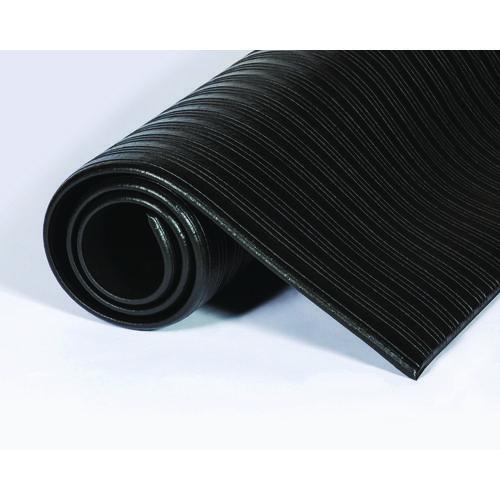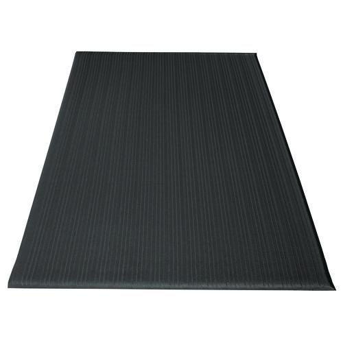 Ribbed Vinyl Anti-Fatigue Mat, Rectangular, Black Ribbed Surface, 24" x 36"