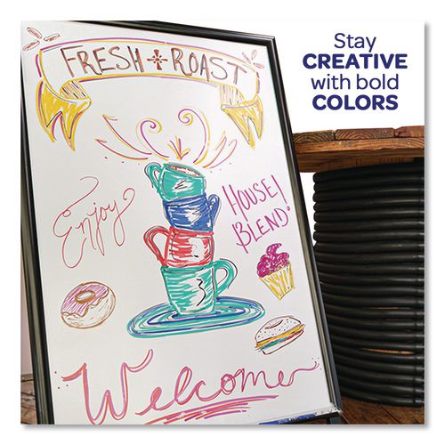 Quick to dry but easy to erase! Vibrant colors are great for bold messages on most white boards. Each marker has a chisel tip that is perfect for thick or thin lines and features an ink level indicator so you always know when it's time to restock. The markers are low odor, making them ideal for classrooms, offices, and meeting rooms.