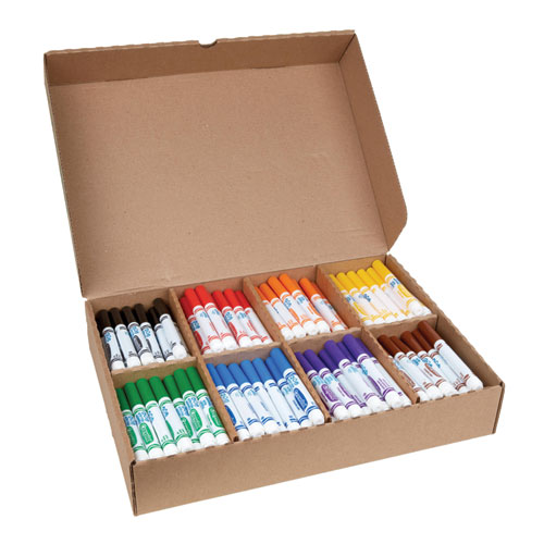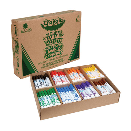 Check off some important school supplies from your back to school list with this Classpack. Perfect for coloring fun, homework assignments, and school projects! Students can choose from assorted colored markers to make and create in the classroom. Bulk markers are great for a group and as classroom supplies, especially in this art set that keeps them neatly stored and organized. Plus, teachers will love that they're washable from skin, painted walls, and most clothing.