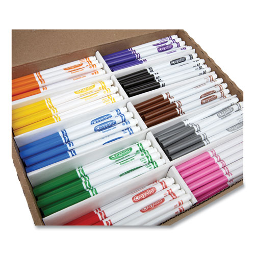 Check off some important school supplies from your back to school list with a Crayola Classpack. This large marker set features 200 Fine Line Markers, perfect for coloring fun, homework assignments, and school projects. Students can choose from 10 assorted marker colors to make and create whether at home or in the classroom. Bulk markers can be used for a wide range of projects and are ideal for providing supplies to groups of young artists. Durable, fine line marker tips withstand repeated use and will not easily push into the marker tubes. Crayola markers feature vivid colors that won't bleed or soak through the page. The divided storage box makes art supplies easy to organize and display. Safe and nontoxic, ideal for ages 4 and up.
