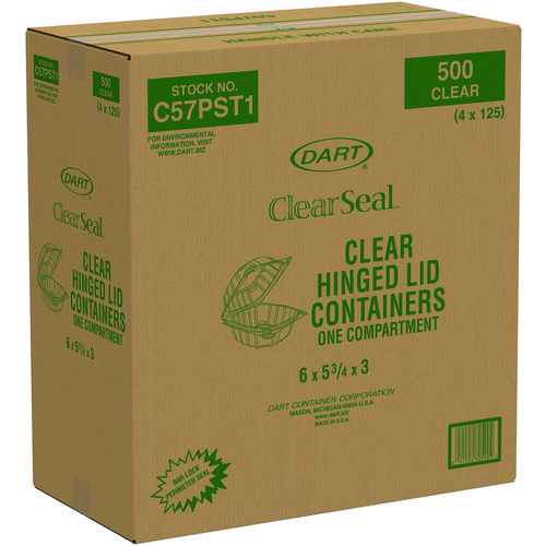 ClearSeal Hinged-Lid Plastic Containers, 5.8 x 6 x 3, Clear, Plastic, 125/Pack, 4 Packs/Carton