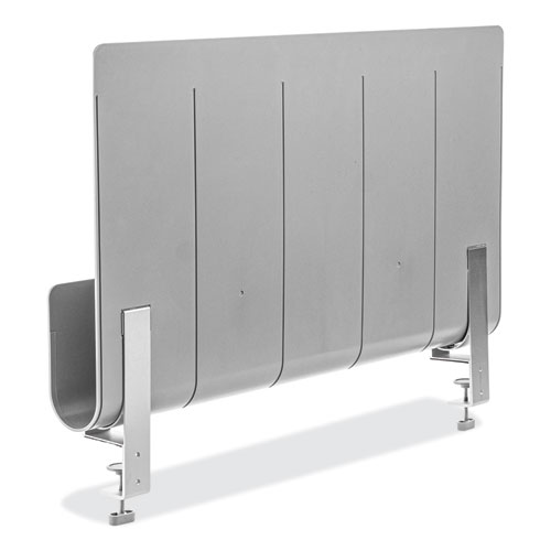 Tune out office noise and focus on your work. The innovative J shape makes this a privacy screen and storage solution in one. File folders and office supplies fit in the panel pocket to optimize your workspace. Optional privacy panel accessories provide additional storage(sold separately).