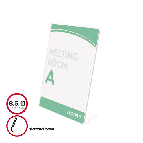 Superior Image Slanted Sign Holder, Top Loading, Portrait, 8.5 x 11 Insert, Clear
