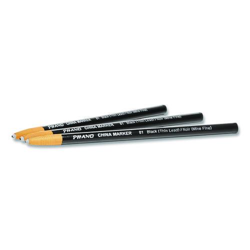 China Marker, Thin Core, 0.37" x 7", Black, 12/Pack