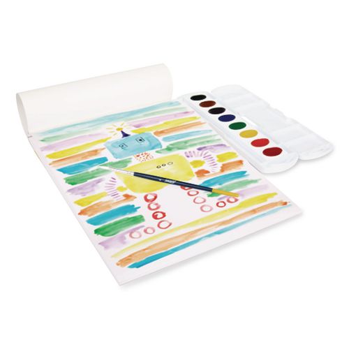Art pad features heavyweight, student-grade stock that's designed specifically for watercolor painting. For best results, pair with Prang® watercolors. Smooth paper finish also supports a variety of art mediums: pencil, charcoal, ink and more. Sturdy paperboard cover provides artists with the flexibility to work from an easel or a tabletop. Acid-free processing prevents the paper from yellowing or crumbling with age.
