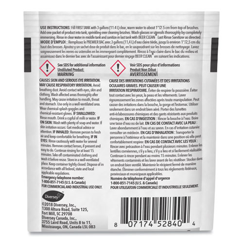 Beer Clean Glass Cleaner, Powder, 0.5 oz Packet, 100/Carton