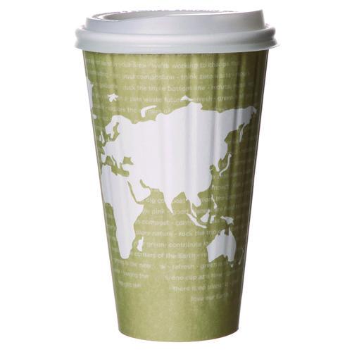 Put the world in your customers' hand when you choose the attractive World Artâ„¢ cup design. Double-wall construction provides heat protection and insulation. Lined with PLA, a plant-based plastic.