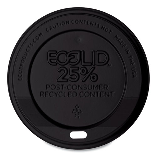 EcoLid 25% Recycled Content Hot Cup Lid, Fits 10 oz to 20 oz Hot Cups, Plastic, Black, 100/Pack, 10 Packs/Carton