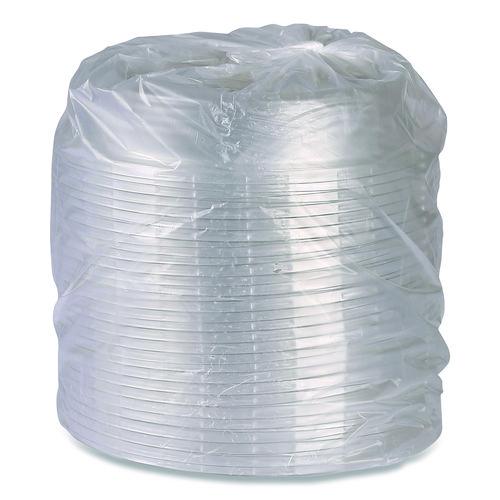 100% Recycled Content Round Plate Lids, Plastic, 9" dia x 1.5" h, Clear, 300/Carton