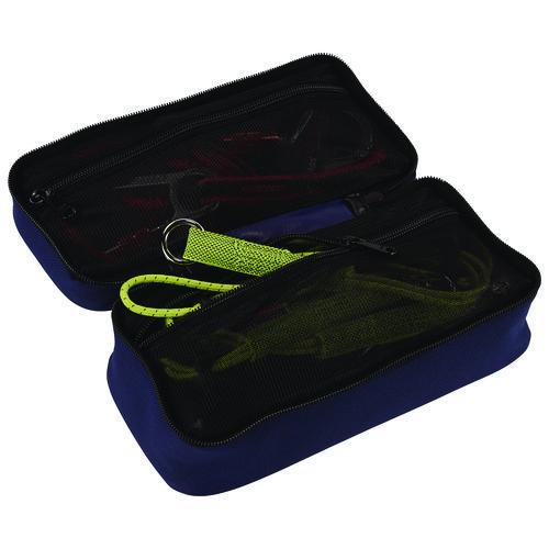 This tool case is built for easy storage and organization of small tools, accessories or personal items, while also remaining compact enough to easily transport and store. Crafted with a durable 600D polyester material and water-resistant backing, these zippered bags are designed to protect gear for long-lasting use. This tool case opens completely and lays flat for easy access and viewing. Two mesh, zippered pockets in the interior make for complete and easy organization of small items and tools, while an exterior ID card window holds business cards and jobsite IDs for easy identification. A top grab handle makes for easy transport. Ideal for installers, electricians, carpenters, HVAC workers and various trade professionals, as well as for personal use for home organization, photographers or makeup artists.