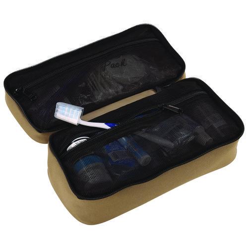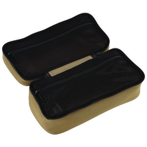 This tool case is built for easy storage and organization of small tools, accessories or personal items, while also remaining compact enough to easily transport and store. Crafted with a durable 600D polyester material and water-resistant backing, these zippered bags are designed to protect gear for long-lasting use. This tool case opens completely and lays flat for easy access and viewing. Two mesh, zippered pockets in the interior make for complete and easy organization of small items and tools, while an exterior ID card window holds business cards and jobsite IDs for easy identification. A top grab handle makes for easy transport. Ideal for installers, electricians, carpenters, HVAC workers and various trade professionals, as well as for personal use for home organization, photographers or makeup artists.