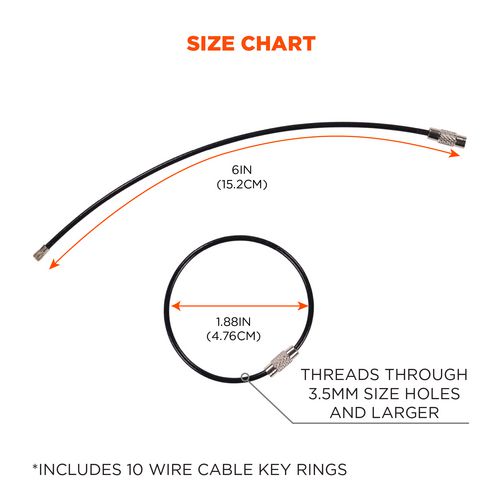 Arsenal 5719 Wire Cable Key Ring, 1.88" dia, Iron, Black, 10/Pack