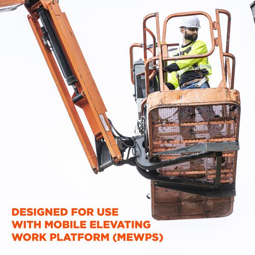 Designed specifically for use with mobile elevating work platforms (MEWPs), such as boom, scissor lifts and other applications where fall restraint is required. While fall arrest systems protect a user when a fall occurs, a fall restraint system prevents you from reaching a fall hazard by connecting the user's harness to a reliable, stable anchor system.