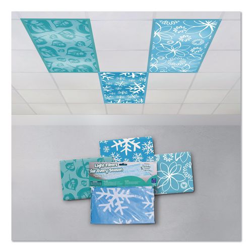 Eliminate the harsh, headache-inducing glare and flicker from typical fluorescent lighting with three beautifully designed seasonal light filters representing fall, winter and spring/summer! Each 2 ft x 4 ft panel in this set of three features magnetic corners that attached easily to standard fluorescent ceiling fixtures. Perfect for creating a calming, soothing atmosphere in the classroom or the office.