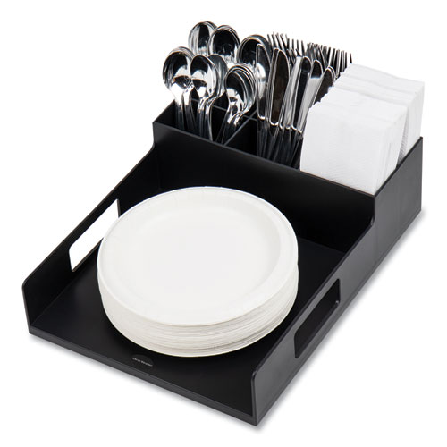 Network Collection Utensil, Napkin and Plate Countertop Organizer, 15.2 x 11.5 x 4.45, Plastic, Black