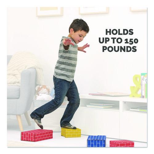 Young creative builders ages three years and up will love playing with these durable large cardboard building blocks. Each set features large and medium building blocks in three different colors with a fun brick design for constructive and imaginative play. Building blocks for toddlers who can enjoy playing with others to build tall towers and have fun knocking them down. The blocks are easy to assemble but require adult assistance. Blocks are made from strong corrugated board that can hold up to 150 lbs.