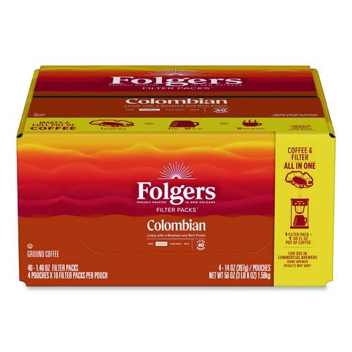 Coffee Filter Packs, 100% Colombian, 1.4 oz Pack, 40/Carton