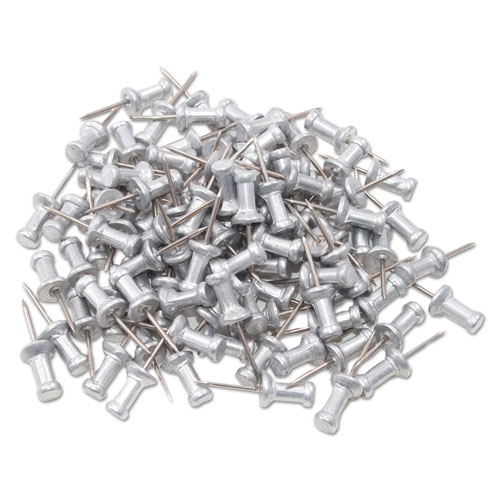 Aluminum Head Push Pins, Aluminum, Silver, 0.5", 100/Box