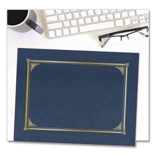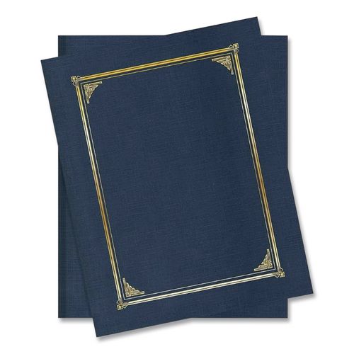 Premium 80-lb linen textured cover stock with elegant gold-foil design. Covers enhance presentations of assorted documents including certificates, photographs, menus, or artwork. Covers fit 8.5" x 11", A4 and A10 size documents.