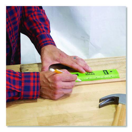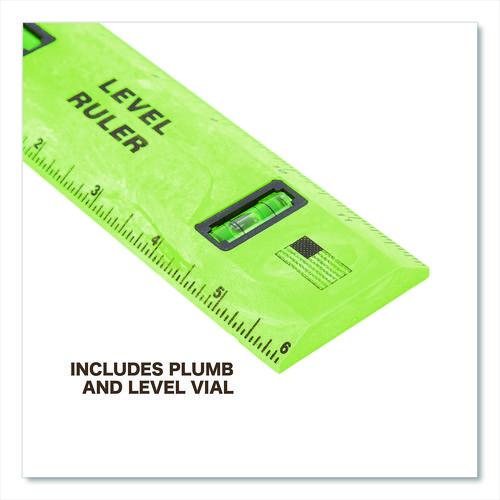 The 12-inch polystyrene level ruler is both a level and a ruler, with plumb and level vials (accurate to 0.001 inch).
