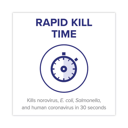 Formulated for convenience and ease-of-use, this spray provides powerful germ-kill on the surfaces people touch most yet is gentle enough to use on a child's highchair with no rinse required. Patented fragrance-free formulation sanitizes without any harsh chemicals. It eliminates 99.9 percent of viruses and bacteria on surfaces including norovirus, E. coli, Salmonella, and human coronavirus in 30 seconds.