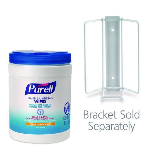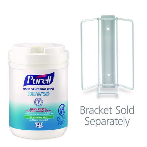 - Wall-mountable bracket to help make sanitizing wipes available in a specific location.