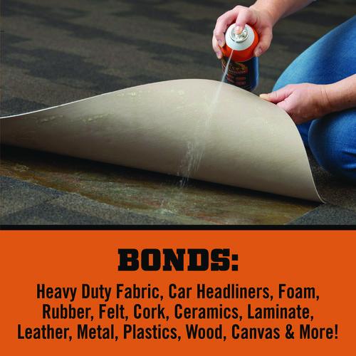 An incredibly strong, permanent contact adhesive that resists heat and moisture. Our formula has an aggressive tack that can be used on a variety of materials and surfaces, both indoors and out. The adjustable anti-clog nozzle is easy to use and offers three ways to spray web pattern, for a narrower or wider application.