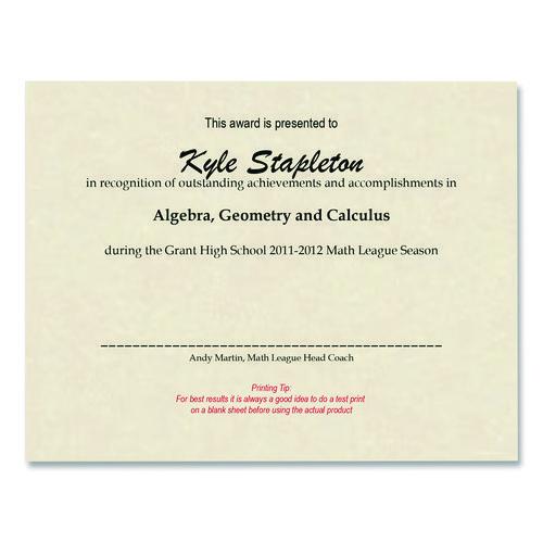 Create visually distinctive awards and diplomas with this pack of certificates printed with a classic parchment background. This Great Papers!® faux-parchment certificate paper is compatible with laser and inkjet printers, so it is easy to create custom prizes for any occasion.