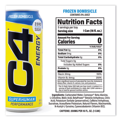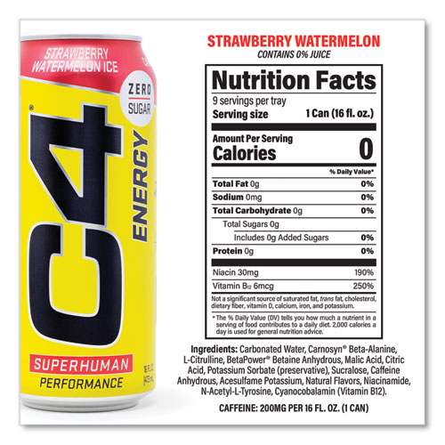 Energy drink in a delicious and sugar-free carbonated form features 200 mg of caffeine, CarnoSyn beta-alanine and citrulline malate in every serving. The legendary energy and endurance that you know and love from C4.