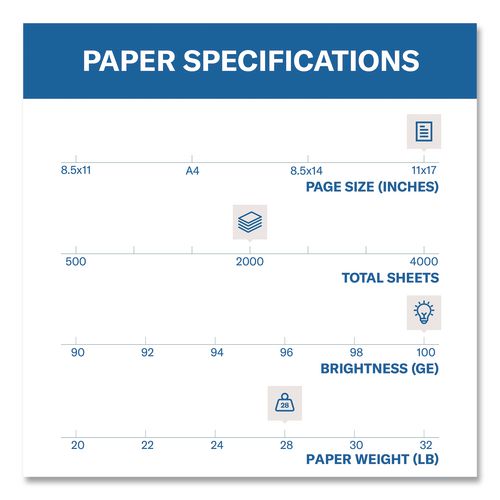 Premium Color Copy Print Paper, 100 Bright, 28 lb Bond Weight, 11 x 17, Photo White, 500 Sheets/Ream, 4 Reams/Carton