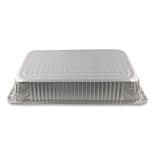 Ridged aluminum foil pan provides superior quality for cooking, freezing and storing. Excellent for catering. Used for hot or cold foods.