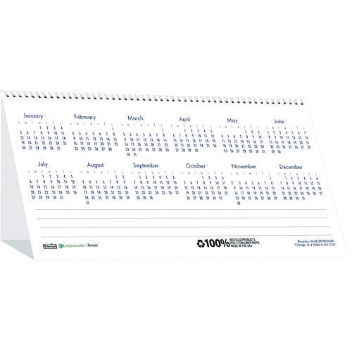 - Stand-alone, tent-design calendar is perfect where desk space is limited.