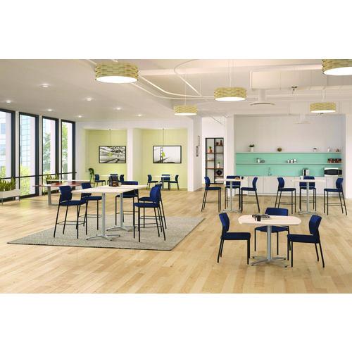 The lightweight base makes movement throughout your space a breeze. Easily attach solid steel brackets to a table top using pre-drilled holes. Leveling glides adjust to compensate for uneven floors.