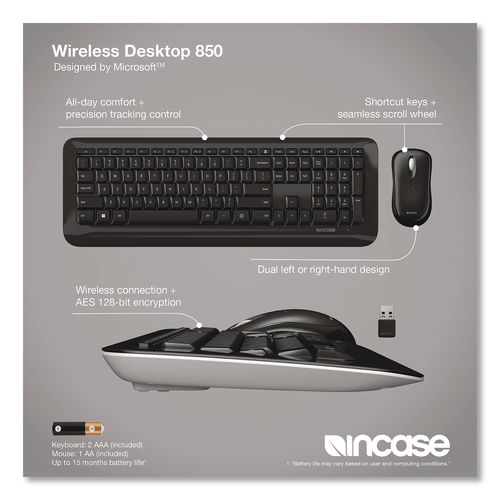 Wireless Desktop 850 Keyboard and Optical Mouse Combo, 2.4 GHz Frequency/15 ft Wireless Range, Black