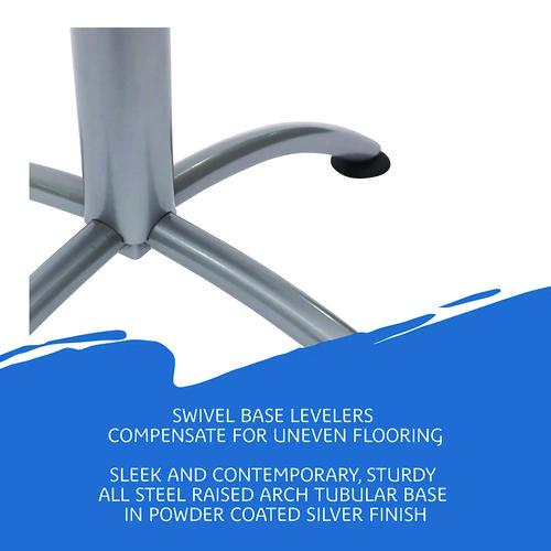 Inspire conversation and collaboration with tables that bring people together. Wear-resistant 1-1/8" thick melamine top resists spills, warping, hot/cold temperatures, and features a vinyl T-mold edge. Powder-coated steel arched base is strong, and adjustable feet compensate for uneven flooring.